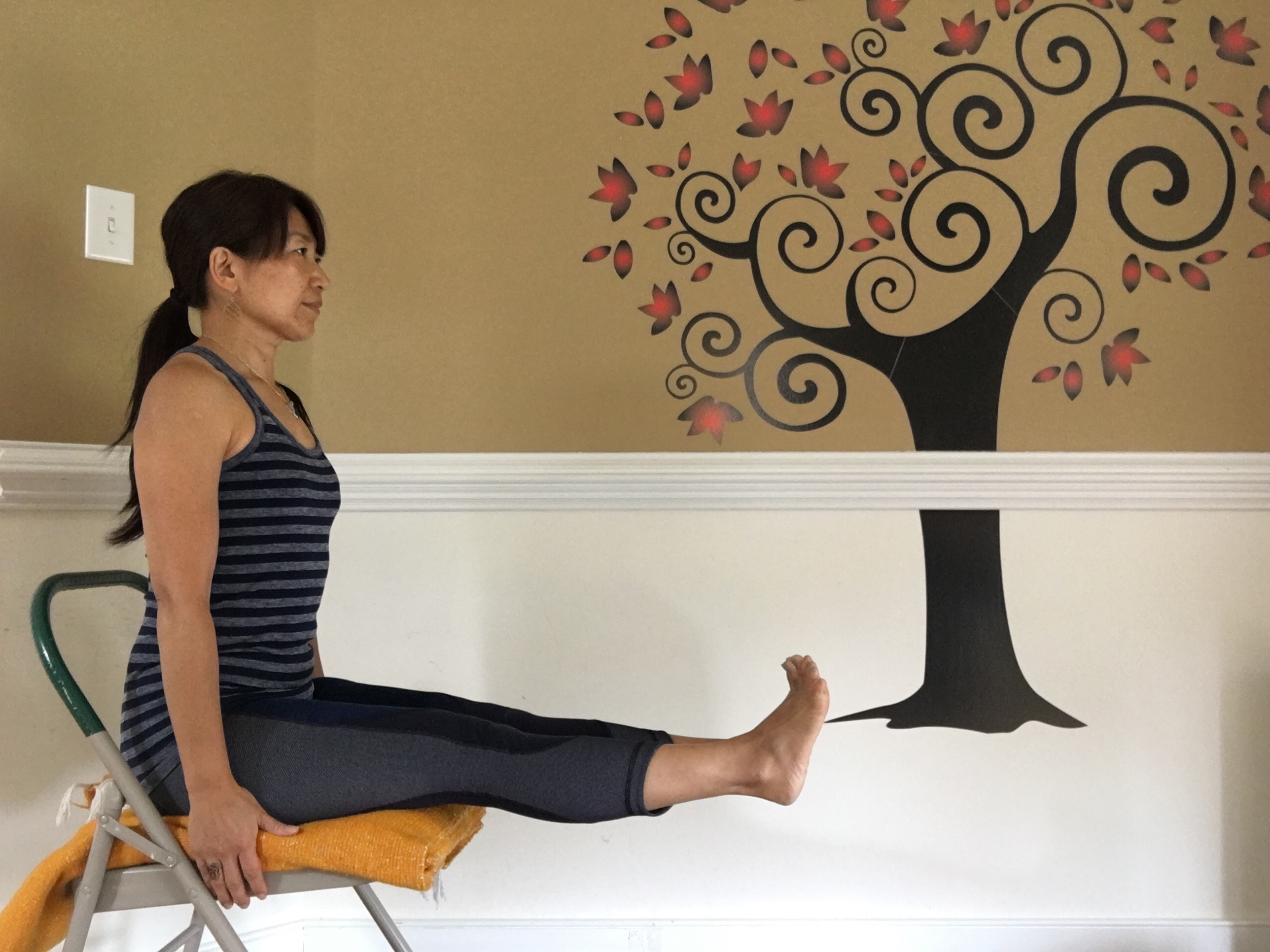 ‘Chair’ is a very helpful tool(prop) for practicing yoga. ‘Chair’ could help you to ground(stability), to elongate(space), and to learn body awareness.